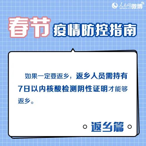 返鄉(xiāng)人員需持7天內(nèi)有效新冠病毒核酸檢測(cè)陰性結(jié)果返鄉(xiāng),返鄉(xiāng)后實(shí)行14天居家健康監(jiān)測(cè),期間不聚集、不流動(dòng),每7天開展一次核酸檢測(cè)?!比涨埃抖杭巨r(nóng)村地區(qū)新冠肺炎疫情防控工作方案》對(duì)農(nóng)村地區(qū)及返鄉(xiāng)人員相關(guān)防疫工作進(jìn)行部署。